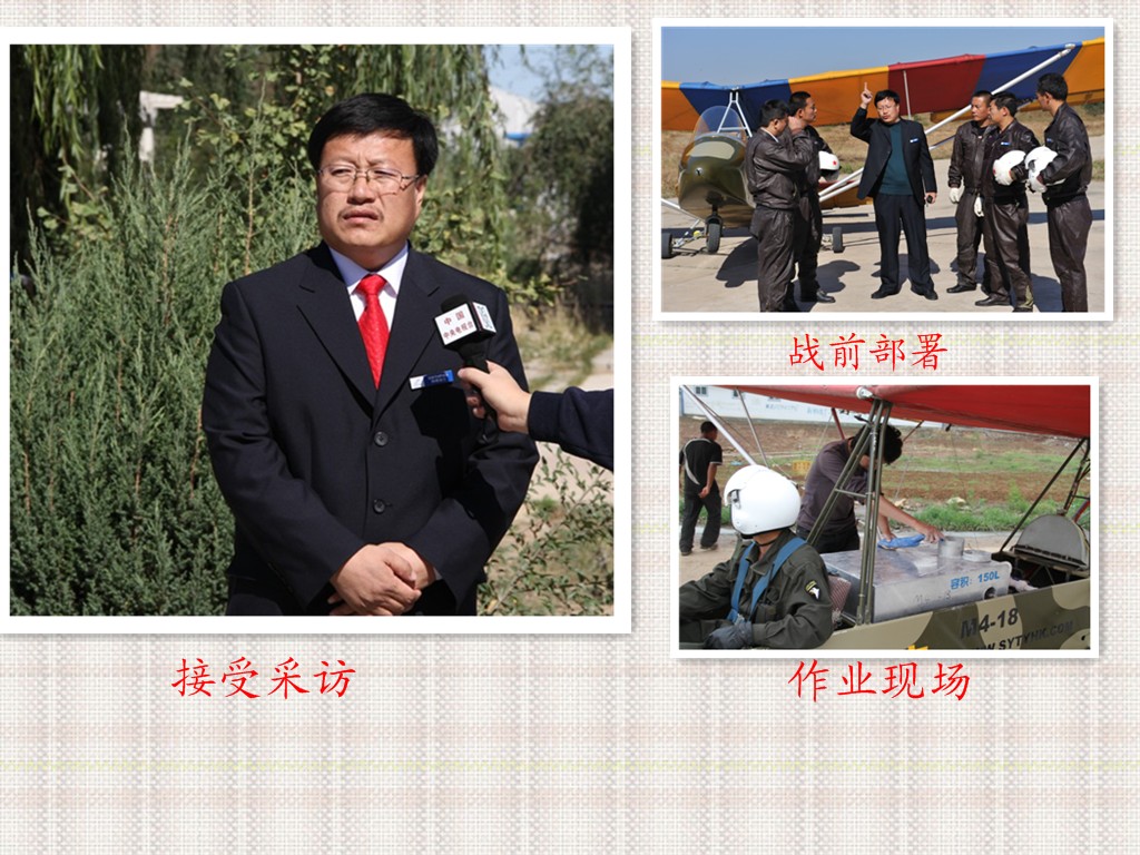 在祖國版圖的北方,茫茫的科爾沁沙地上活躍著一支以下崗職工創(chuàng)建的充滿傳奇色彩的隊(duì)伍--通遼市神鷹通用航空有限公司,他是全國第一家以超輕型飛機(jī)注冊的中國通用航空企業(yè),同時也是全國第一家集飛機(jī)播種、空中施肥、空中噴灑植物調(diào)節(jié)劑、空中除草、防治農(nóng)林牧業(yè)病蟲害、草原滅鼠、防治衛(wèi)生害蟲、航空護(hù)林、空中拍照、私用飛行駕駛執(zhí)照培訓(xùn)、航空運(yùn)動訓(xùn)練飛行、航空運(yùn)動表演飛行、個人娛樂飛行為主營業(yè)務(wù)的綜合性通用航空企業(yè)?,F(xiàn)有超輕型飛機(jī)30余架,號稱中國私人第一飛行機(jī)群,從業(yè)人員70余人的專業(yè)進(jìn)行農(nóng)林牧業(yè)作業(yè)的社會福利型團(tuán)隊(duì),多年來在防治農(nóng)林牧業(yè)病蟲害工作中默默無聞的為改善祖國生態(tài)環(huán)境做著不懈的努力,截止201091日,在我國山東省、河北省、遼寧省、吉林省、內(nèi)蒙古自治區(qū)共進(jìn)行飛機(jī)防治農(nóng)林牧業(yè)病蟲害和飛機(jī)播種2500萬畝,積極參與了“綠色奧運(yùn)環(huán)保飛行”、國家項(xiàng)目“京津唐風(fēng)沙源治理工程”、“遼寧省荒山治理工程”、“內(nèi)蒙古荒沙荒山治理工程”等多項(xiàng)國家“十一.五”期間重點(diǎn)工程項(xiàng)目,特別是2008年以后,在我國北方沿海地區(qū)美國白蛾泛濫,公司上下齊動員在蟲災(zāi)最嚴(yán)重的河北省、山東省連續(xù)三年作業(yè),為抑制美國白蛾在我國大面積泛濫做出不懈努力,得到當(dāng)?shù)卣陀嘘P(guān)單位的一致好評,2009--2010年內(nèi)蒙古自治區(qū)西部蝗蟲泛濫,大片農(nóng)田、草原頃刻間被吞噬,神鷹航空公司義不容辭,積極參加到與自然災(zāi)害作斗爭的現(xiàn)場,以一絲不茍、認(rèn)真負(fù)責(zé)的精神,在自然環(huán)境極其艱苦的條件下很好的完成任務(wù),許下了“蝗蟲不滅不回家”的豪言壯語。得到有關(guān)部門和廣大群眾的一致好評。