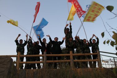 在拓展訓(xùn)練活動(dòng)中,總經(jīng)理邱志剛、副總經(jīng)理孫學(xué)慧與員工分享勝利的喜悅